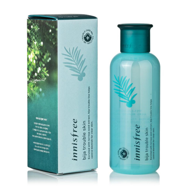 Тонер Innisfree Bija Trouble Skin - ефективний протизапальний засіб для тонізації та оздоровлення проблемної шкіри. Ефективно усуває подразнення, запобігає появі вугрової висипки та прищів, звужує пори. Засіб дбайливо відлущує відмерлі частки, стимулюючи оновлення шкіри.