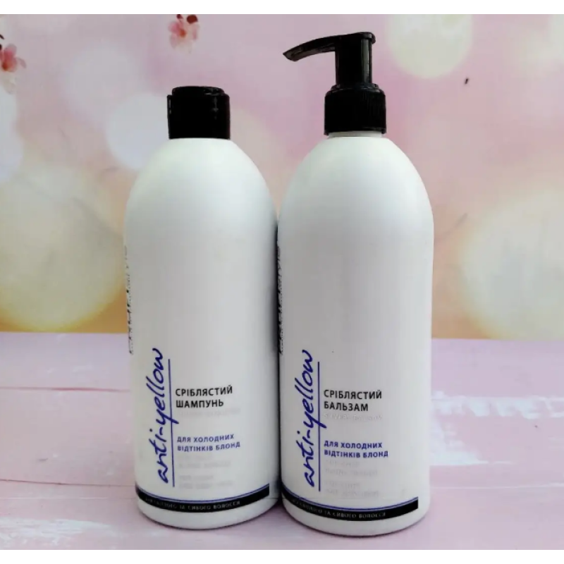 Шампунь ANTI-YELLOW "Сріблястий" - розроблений для світлого, сивого та освітленого волосся. Засіб делікатно очищає, нейтралізує небажану жовтизну після фарбування чи знебарвлення та підсилює холодні сріблясті відтінки. В складі є східний фіолетовий пігмент, провітамін B, які ефективно усувають залишки хімічних продуктів після процедур освітлення або знебарвлення волосся. Шампунь нейтралізує небажаний жовтий відтінок, а також підсилює сріблясті відтінки, надає їм яскравості та блиску. Він чудово справляється з основною функцією усунення забруднень та надає протизапальний, заспокійливий та відновлювальний ефект. Засіб від PROFIstyle підтримує холодний блонд.