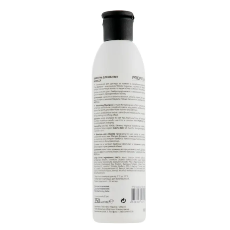 Шампунь ProfiStyle VOLUME - створений для догляду за тонким та ослабленним волоссям. Шампунь має мяку формулу, яка делікатно очищує волосся, надає локонам прикореневий об'єм і відчуття легкості. В складі є креатин - зміцнює та відновлює структуру волосся. Протеїни сої - ущільнюють, живлять та надають еластичності. Екстракт бамбука- зволожує, тонізує та дарує свіжість. Шампунь створює пишний прикорневий об'єм, волосся стає більш щільним та шовковистим. Засіб створює зволоження та мякість без обтяження та гарантує легке розчісування та слухняність в укладанні. Шампунь від ProfiStyle гарантує легке розчісування та слухняність в укладанні.