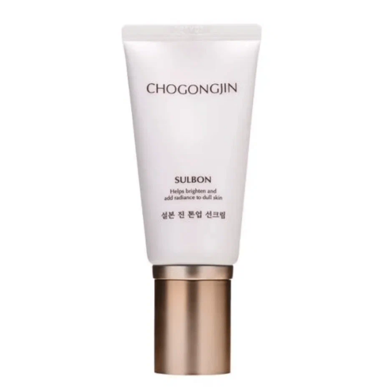 Крем Chogongjin Sulbon Jin Tone-Up Sun Cream SPF50+/PA++++50ML - надійний засіб у боротьбі з пігментацією, сухістю та першими ознаками старіння. Потужна формула активно зволожує, вирівнює тон шкіри та надає їй сяйва та пружності. В складі є ніацинамід - освітлює пігментацію, вирівнює тон та бореться з ознаками старіння. Сквалан - зволожує, пом'якшує і покращує проникнення активних компонентів. Алоє вера - заспокоює, усуває сухість та подразнення. Аденозин - стимулює вироблення колагену та еластину, підвищує пружність. Екстракт ламінарії - антиоксидант, що прискорює регенерацію та зволожує. Екстракт женьшеню - відновлює, захищає та омолоджує шкіру. Крем поєднує ефективний захист від ультрафіолету з відновлювальним і освітлювальним доглядом. Засіб від Missha не лише захищає шкіру від шкідливого впливу UV-променів, але і підсилює її життєву силу, вирівнює тон та дарує природне сяйво.