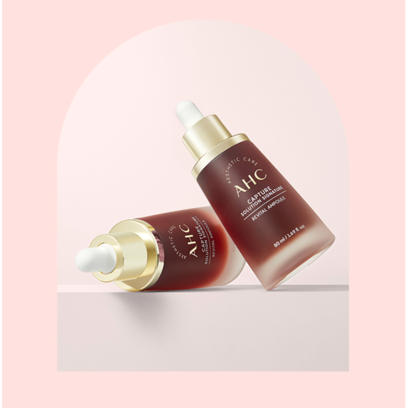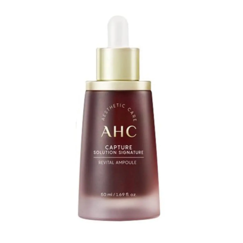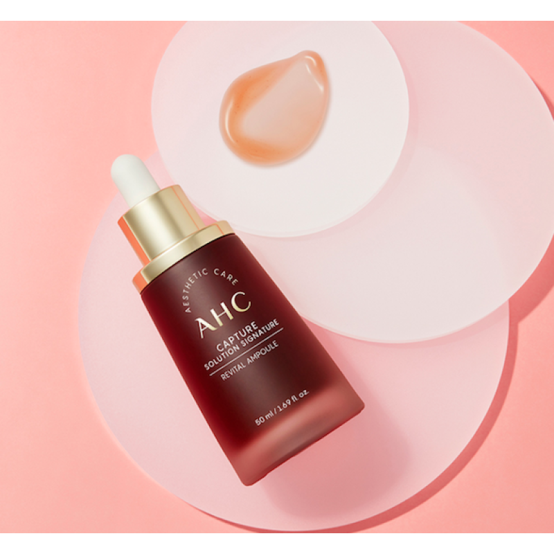 Сироватка capture solution signature revital ampoule - містить комбінацію омолоджувальних і зволожувальних компонентів, які комплексно впливають на глибокі шари епідермісу та покращують стан шкіри. В складі є гідролізований колаген - утримує вологу в клітинах, розгладжує шкіру, запобігає появі зморшок. Лізат лактобактерій - підтримує здоров'я мікрофлори епідермісу, контролює синтез меланіну і сприяє відновленню шкіри. Ніацинамід - зменшує жирний блиск, візуально зменшує пори та вирівнює тон шкіри.Екстракт квіток ромашки - пом'якшує, заспокоює, бореться з почервонінням і свербінням. Сироватка ревіталізує, оживлює шкіру, зменшує помітність пір і покращує колір обличчя. Засіб від AHC має структуру гідрогелю, який сприяє кращому засвоєнню компонентів та проникає в глибокі шари шкіри.