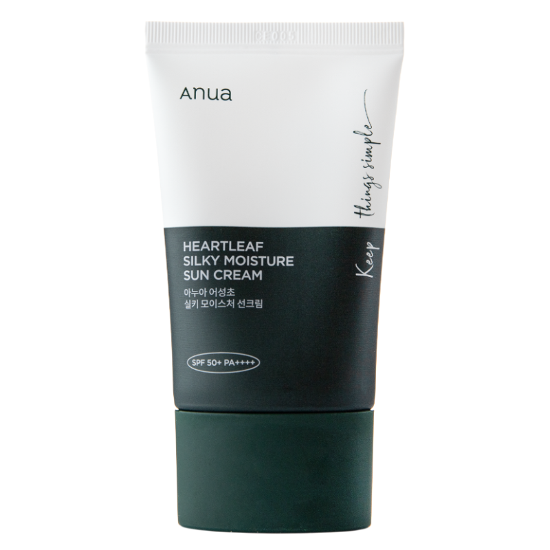 Сонцезахисний крем Heartleaf Silky Moisture Sun Cream SPF 50+ PA++++ - це мінеральний засіб, який поєднує надійний захист від сонця з активними доглядовими компонентами, які допомагають зберегти шкіру здоровою, зволоженою та врівноваженою. Завдяки фізичному фільтру крем делікатно діє на чутливу шкіру, не спричиняючи подразнень, а біоактивні екстракти зменшують запалення, почервоніння та прояви акне. В складі є центелла азійська, яка сприяє загоєнню мікропошкоджень, зменшує запалення та почервоніння, стимулює регенерацію. Екстракт полину - має антиоксидантну та протизапальну дію, заспокоює шкіру та зменшує її чутливість. Гауттюйнія - потужна антимікробна дія, зменшення запалень та висипань. Екстракт чайного дерева - ефективний проти бактерій, що викликають акне. Крем має потужний SPF-захист від UVA/UVB-променів, легку текстуру без білих слідів та відчуття жирності, заспокоює, оздоровлює та зволожує шкіру при щоденному використанні. Засіб від Anua вибір для тих, хто хоче поєднати захист, догляд і профілактику недоліків шкіри в одному продукті.