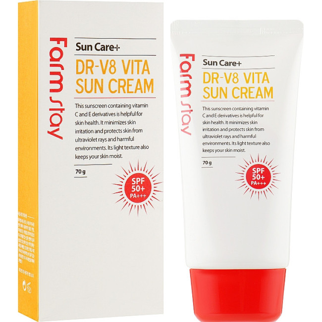 Функціональний крем DR-V8 Vita Sun Cream SPF50+, PA+++ має унікальні фотопротекторні властивості. Він інтенсивно зволожує, живить, вітамінізує шкіру, надає їй гладкості та пружності, запобігає фотостарінню. Відпочинок порадує приємними спогадами, якщо Ви скористаєтеся цим препаратом.