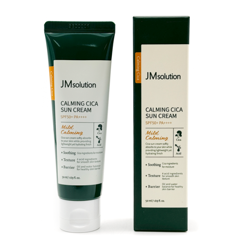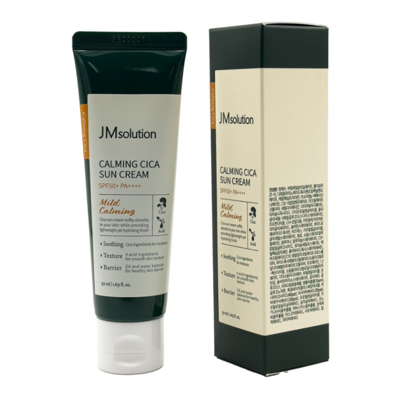 Крем Calming Cica Sun Cream - забезпечує надійний захист від ультрафіолетового проміння, запобігаючи появі опіків, пігментації та фотостаріння. Засіб демонструє заспокійливу та пом'якшувальну дію, справляється з подразненнями та почервоніннями. В складі крему присутній фізичний Уф-фільтр діоксид титану, який забезпечує захист до 8 годин в городських умовах. Головним компонентом є екстракт центелли азійської, який заспокоює та загоює шкіру , стимулює вироблення гіалуронової кислоти та забезпечує антиоксидантний захист клітин. Склад крему сприяє оновленню рогового шару, підтримує чистоту пір та робить шкіру чистою та рівною. Саліцинова кислота- компонент, який делікатно очищує пори та забезпечує відлущення шкіри. Лізат біфідобактерій - нормалізує мікробіот шкіри, знижує запалення та зменшує чутливість до зовнішніх подразників. Екстракт квітів гібіскуса - має антиоксидантну дію, зволожує шкіру та уповільнює процеси старіння. Засіб від JMSolution ідеальний варіант для захисту шкіри від сонця та додатковими доглядовими засобами.