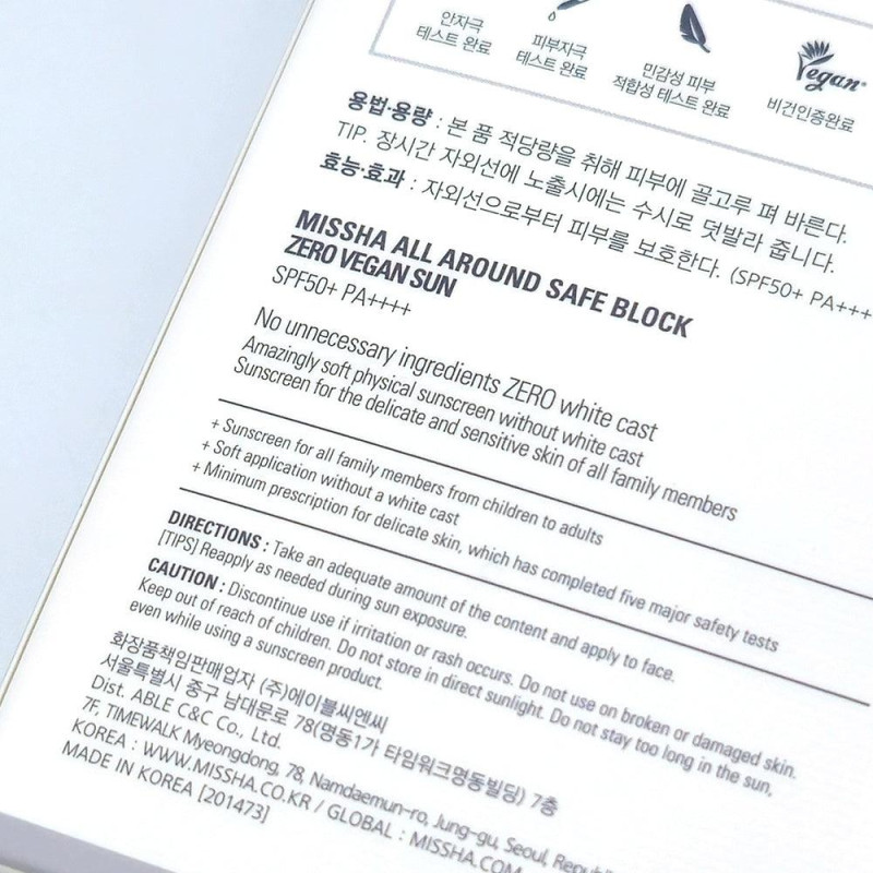 Сонцезахисний крем Missha All Around Safe Block Zero Vegan Sun з