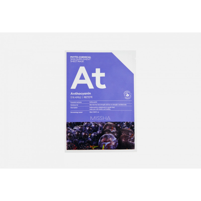Тканинна маска Missha Phytochemical Skin Supplement Sheet Mask Anthocyanin/Lifting має омолоджуючий, відновлюючий, гідратуючий вплив. Має виражений ліфтинг-ефект – підтягує шкіру та розгладжує зморшки.