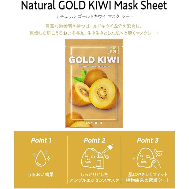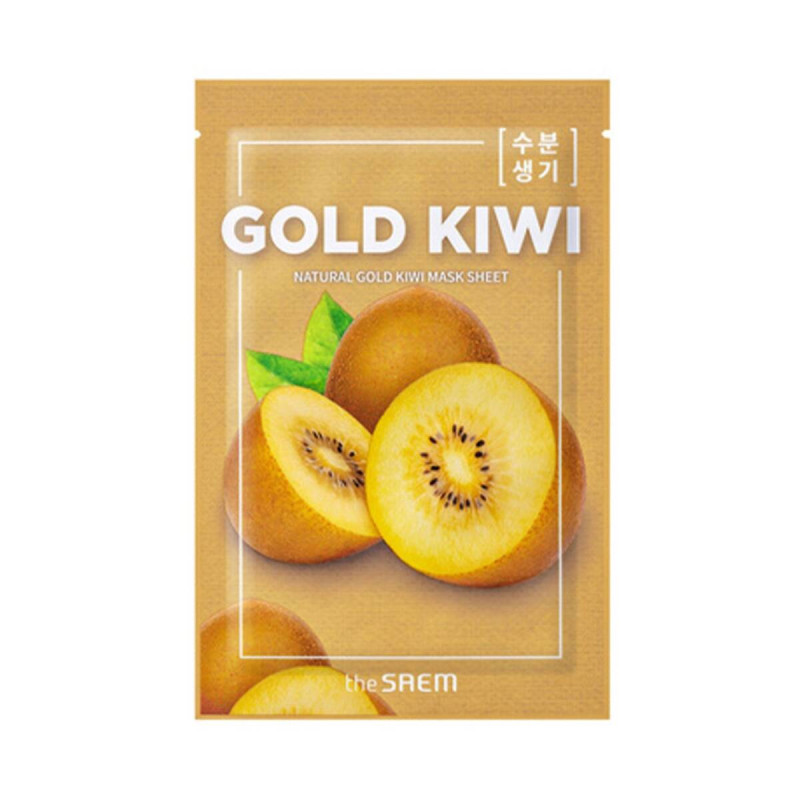 Ефективний засіб The Saem Natural Gold Kiwi Mask Sheet допоможе за 20 хвилин вирівняти тон шкіри, зробити її більш свіжішою. Якщо зранку потрібно привести шкіру до ладу, то тканинна маска стане помічником в боротьбі зі втомою і недосконалостями шкіри. Вона дає інтенсивний догляд і дарує відчуття свіжості після зняття маски. Маска забезпечує щільне прилягання до шкіри й всі компоненти в складі через пори проникають в шкіру. Активні компоненти в складі зменшують запалення і допомагають шкірі швидко відновитися. Після нанесення маски пружність шкіри відновиться і вирівняється загальний колір шкіри. Есенція золотого ківі наповнює шкіру вітамінами, надає природного блиску. Маска додає шкірі еластичності та гладкості без відчуття липкості. Запах ківі дарує приємний аромат і робить процедуру більш лагідною. The Saem Natural Gold Kiwi Mask Sheet – це догляд, який поєднує корейські традиції і сучасні технології, що допоможе зранку зробити лице доглянутішим.