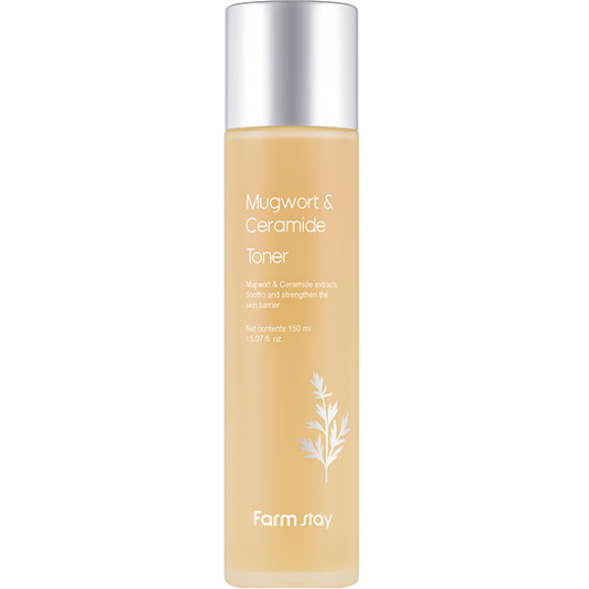 Тонер для обличчя MUGWORT & CERAMIDE TONER - засіб м'яко відновлює баланс шкіри, а повертає комфорт після сухості. В складі є екстракт полину - зменшує почервоніння та підтримує здоровий свіжий вигляд шкіри. Кераміди - зміцнюють ліпідний бар'єр, допомагає утримувати вологу та запобігає зневодненню. Комплекс рослинних екстрактів (лаванди, шавлії) - дбайливо доглядає за шкірою, підвищують її еластичність та дарує відчуття свіжості. Алантоїн і ніацинамід - сприяють оновлення клітин, покращує текстуру шкіри та вирівнює тон обличчя. Тонер допомагає зменшити запалення та почервоніння, регулює роботу сальних залоз і відновлює захисний ліпідний бар'єр шкіри. Засіб від FARMSTAY швидко відновлює рівень вологи після вмивання, запобігає сухості та стягнутості, покращує еластичність та вирівнює тон обличчя.