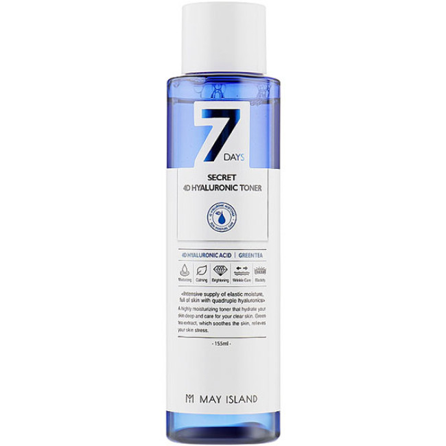 Тонер зволожуючий з гіалуроновою кислотою May Island 7 Days Secret 4D Hyaluronic Toner 155ml
