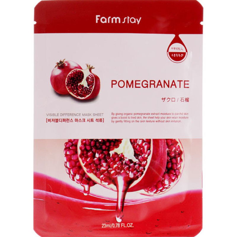 Тканинна маска FarmStay Visible Difference Pomegranate Mask Pack – найкращий спосіб швидко тонізувати, освіжити та зволожити Вашу шкіру. Щедро просочена есенцією з урахуванням гранатового екстракту. Ефективно знімає подразнення, почервоніння, вирівнює тон покриву шкіри.