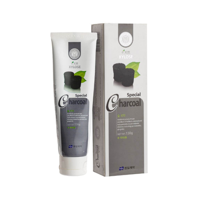Зубна паста Special XYLOSЕ Charcoal - усуває неприємний запах з рота, зволожує ротову порожнину та дарує тривале відчуття свіжості. В складі є активне деревне вугілля, яке ефективно видаляє наліт, абсорбує та виводить хвороботворні бактерії, очищає емаль та надає її природного блиску. Мастикова олія - проявляє виражені антибактеріальні властивості, допомагає запобігти запальним процесам та підтримує здоров'я ясен. Паста чудово усуває неприємний запах з рота, зволожує слизову та дарує тривале відчуття свіжості. Засіб від Hanil має м'яку формулу, яка підходить для щоденного використання і делікатно доглядає за емаллю.