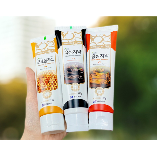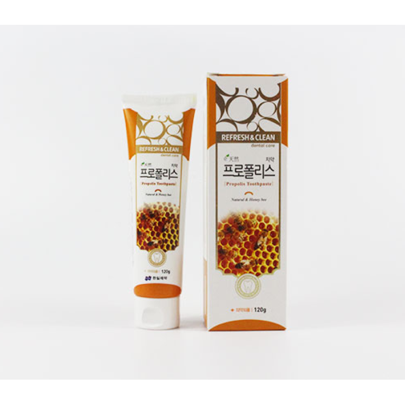 Зубна паста REFRESH & CLEAN Propolis Toothpaste - допомагає зберегти чистоту зубної емалі та поверхні ясен, забезпечуючи тривалу свіжість подиху, запобігає утворення карієсу та зубного каменю, а також перешкоджає розвитку запальних процесів у ротовій порожнині.В складі є прополіс - потужний антиоксидантний засіб, що зміцнює емаль і тканини ясен, дарує зубам здоровий природний блиск. Засіб відходить для щоденного користування, при цьому проявляє свій профілактичний та лікувальний ефект, завдяки чому підходить навіть для чутливих зубів. Зубна паста забезпечує свіжість подиху та усунення неприємного запаху, сприяє регенерації тканин ясен, підтримує їх здоров'я та пружність, а також володіє заспокійливими властивостями, зменшує чутливість та запобігає подразненням. Засіб від Hanil -це природний захист, свіжість та турбота про усмішку.