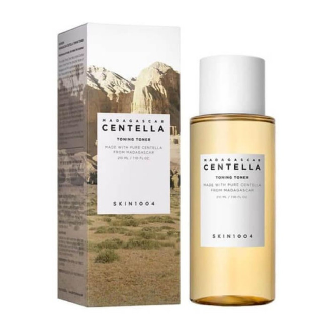 Зволожуючий тонер SKIN1004 Madagascar Centella Toning Toner - ніжний PHA-тонер, який однаково заспокоює, відлущує, зволожує та освітлює. Має освіжаючий та протизапальні ефекти, не дратує та не пересушує шкіру.