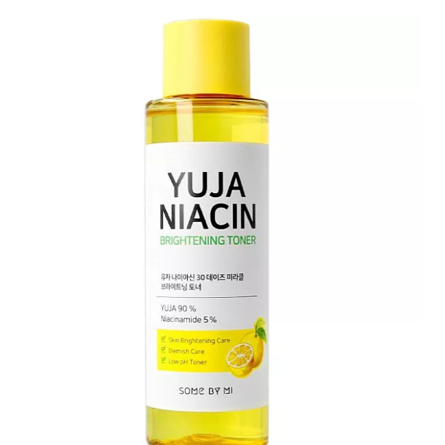Тонер Yuja Niacin Brightening Toner - допомагає вирівняти тон, надає шкірі сяйва та здорового вигляду. Потужна формула засобу з активними компонентами поступово зменшує пігментацію, бореться з тьмяністю та активізує процеси оновлення клітин. В складі є 90% екстракту юдзу, який багатий на вітамін С, відновлює сяйво шкіри. Ніацинамід - освітлює пігментні плями та вирівнює тон. Екстракт лимона - працює над віковою пігментацією. Екстракт лотоса- стимулює регенерацію та покращує текстуру шкіри. Комплекс вітамінів зміцнюють та живлять епідерміс. Тонер працює над підвищенням пружності та гладкості шкіри. Засіб від Some By Mi має легку водянисту текстуру з приємним ароматом, яка швидко поглинається шкірою.