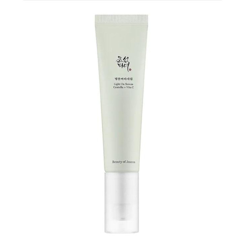 Beauty of Joseon - Light On Serum- Centella + Vita C в состав входит стабильная форма витамина С, то есть 3-О-этиласкорбиновая кислота, которая имеет высокое сродство с кожей по сравнению с другими формами, поэтому не оставляет раздражений и быстро впитывается. Оказывает осветляющий и антиоксидантный эффект, придает коже здоровое сияние. Дополняют композицию увлажняющие компоненты, такие как бетаин, гиалуроновая кислота и бета-глюкан, которые делают кожу мягкой и эластичной.