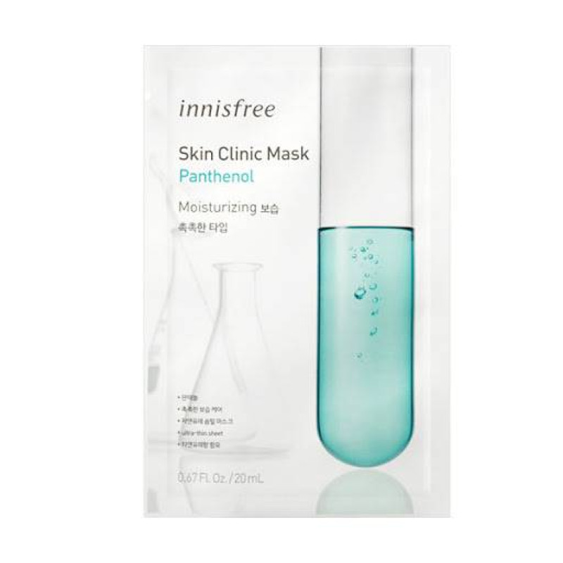 Тканевая маска Innisfree Skin Clinic Mask - Panthenol имеет выраженный увлажняющий и восстанавливающий эффекты. Основа произведена из натурального, ультратонкого хлопка, что обеспечивает максимальное прилегание ткани к коже и качественную абсорбцию эссенции в эпидермис.