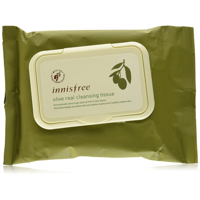 Очищающие салфетки Innisfree Olive Real Cleansing Tissue - настоящая находка для тех, кто нуждается в уходе за кожей в путешествиях, командировке, на протяжении рабочего дня или просто предпочитает использовать для демакияжа салфетки. 24 часа увлажнения благодаря премиальному качеству оливок.