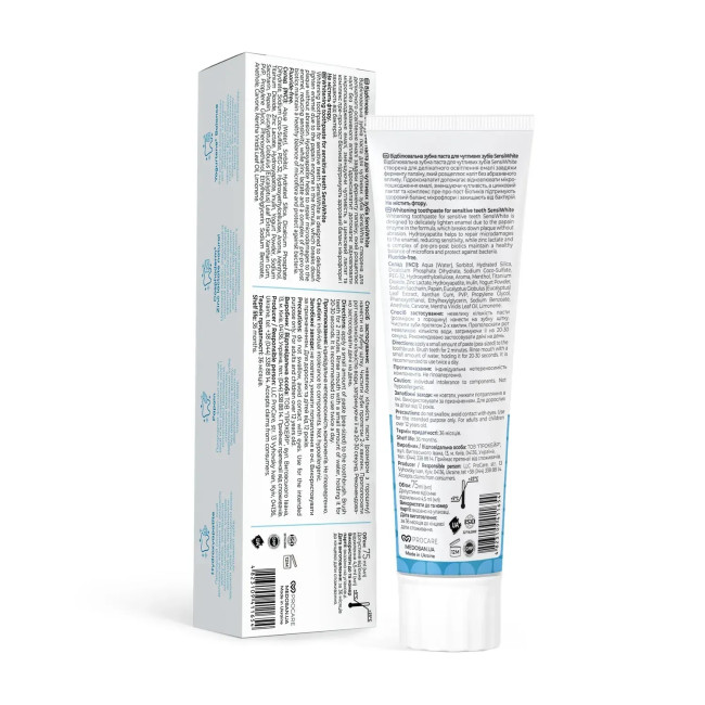 Отбеливающая зубная паста для чувствительных зубов SensiWhite Medosan сочетает деликатное действие и высокий уровень очистки, чтобы вернуть зубам белье без лишней агрессии. В ее основе — увлажняющая база с сорбитом и тонкодисперсный кремний, мягко полирует поверхность эмали, снимает пигментацию от напитков и пищи и делает зубы заметно светлее. Дигидрат двухкальцийфосфата усиливает очищающее действие, обеспечивая глубокое удаление налета из каждого уголка полости рта.