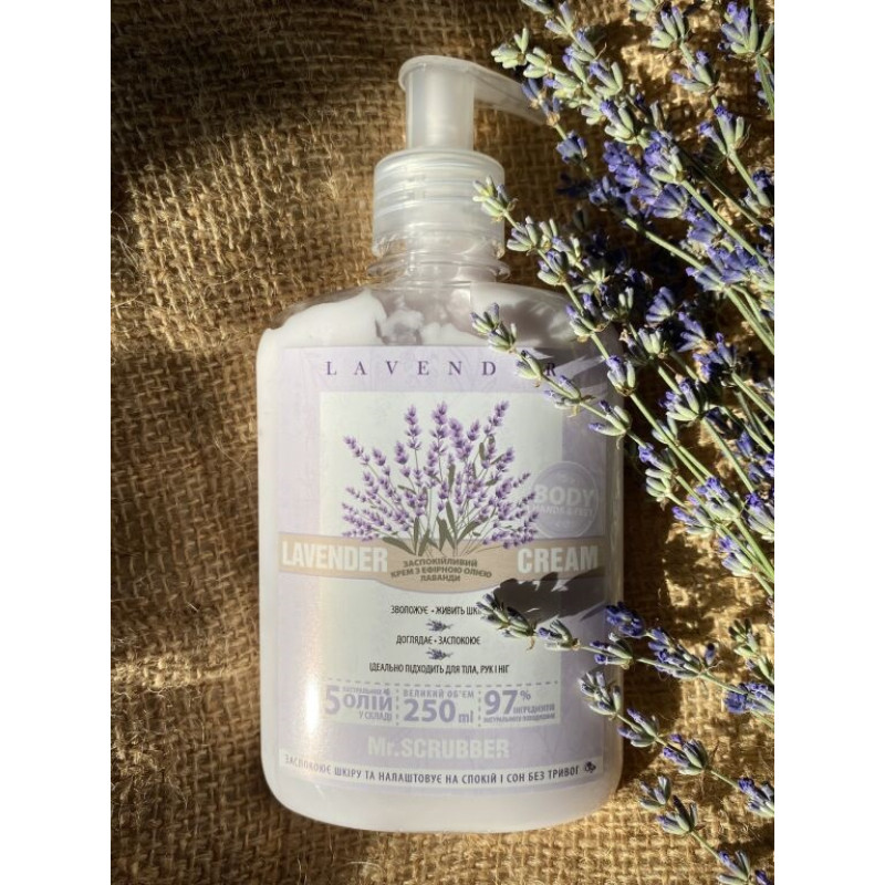 Успокаивающий крем с эфирным маслом лаванды Mr.Scrubber Lavander cream сочетает в себе силу природы и современных технологий, чтобы подарить вашей коже идеальный уход. Его основа — цветочная вода лаванды, успокаивающая, тонизирующая и дающая легкое ощущение свежести. Формула обогащена маслом ши, оливковым, авокадовым и макадамамиевыми маслами, которые интенсивно питают, смягчают и восстанавливают даже сухую и усталую кожу, возвращая ей эластичность и шелковистость.