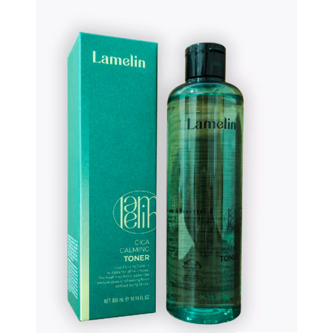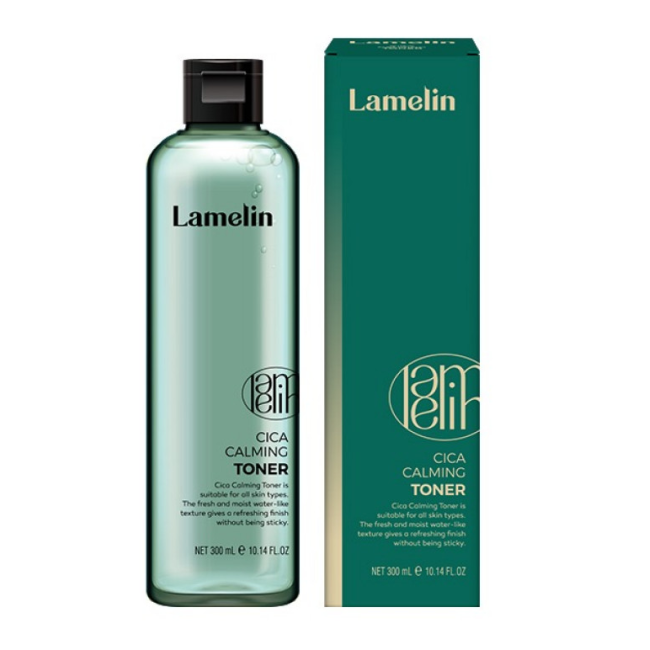Тонер Cica Calming Toner - мгновенно освежает, успокаивает и оказывает тонизирующий эффект коже, при этом сохраняет эластичность кожи. Формула тонера борется с признаками старения, устраняет сухость, укрепляет защитный барьер эпидермиса. Тонер восстанавливает баланс кожи после очищения и подготавливает к следующим этапам ухода, усиливая эффективность других средств. В составе есть экстракт центеллы азиатской - обладает мощным заживляющим действием, снимает воспаления, восстанавливает барьерные функции тела, уменьшает чувствительность и помогает бороться с куперозом. гиалуроновая кислота - глубоко увлажняет, удерживает влагу и формирует на коже защитный барьер, предотвращающий обезвоживание. Экстракт гамамелиса - антибактериальные и противовоспалительные свойства, сужает поры и уменьшает проявление жирности. Экстракт зеленого чая - нормализует обменные процессы, успокаивает раздражения, снимает покраснения и укрепляет естественный иммунитет кожи. Средство от Lamelin улучшит состояние кожи, снимет покраснения, разгладит морщины и укрепит защитный барьер кожи.