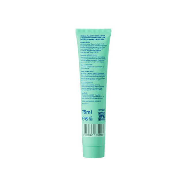 Зубная паста освежающая с отбеливающим эффектом со вкусом мяты Splash Spearmint Peppermint Toothpaste 75 ml