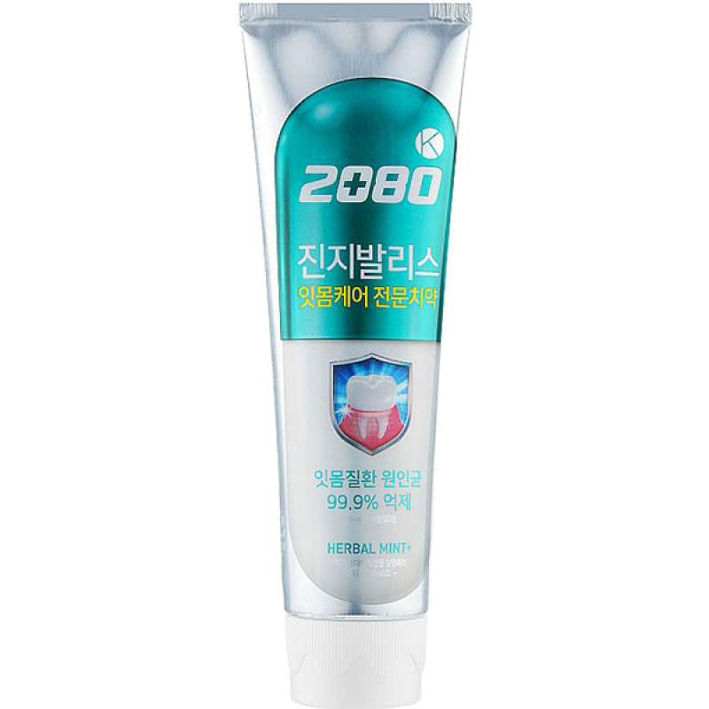 Корейская зубная паста 2080 Gingivalis Herbal Mint Toothpaste AEKYUNG - качественно очистит поверхность зубов и устранит развитие бактерий в полости рта, предотвратит возникновение таких заболеваний ротовой полости, как гингивит, парадонтит, который приводит к потере зуба. Продукт сертифицирован в Корее, отвечает всем требованиям и нормам.