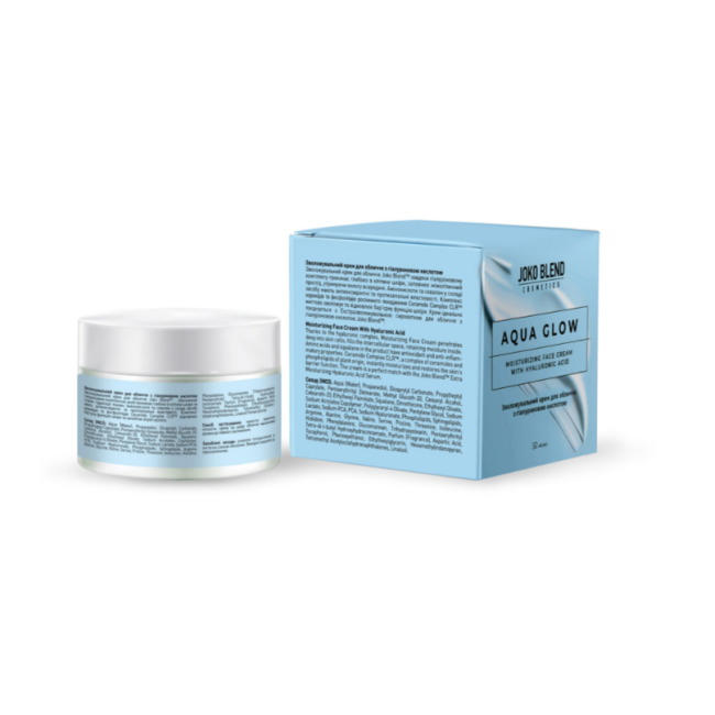 Увлажняющий крем Aqua Glow интенсивно питает и увлажняет кожу, помогает сохранить оптимальный уровень влаги и защитить ее от обезвоживания. В составе есть гиалуроновый комплекс - проникает в глубокие слои кожи, обеспечивая интенсивную гидратацию и поддерживая естественный водный баланс. Аминокислоты и сквалан - обладают антиоксидантными и противовоспалительными свойствами, смягчают кожу, способствуют ее восстановлению и защищают от негативного воздействия внешних факторов. Комплекс керамидов и фосфолипидов - восстанавливает и укрепляет защитный барьер кожи, предотвращает потерю влаги и повышает устойчивость к раздражителям. Крем обеспечивает интенсивное увлажнение, улучшает текстуру кожи и укрепляет кожный барьер. Средство от Joko Blend имеет легкую формулу, которая быстро впитывается, не перегружает кожу и дарит ощущение комфорта, мягкости и здорового сияния.