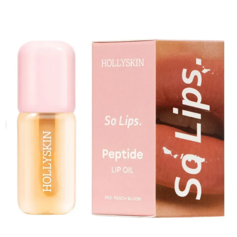 Масло для губ Ноllyskin So Lips. Peptide Lip Oil - это гармония защиты, комфорта и увлажнения для губ. Средство не имеет липкой текстуры, а мягко ложится на губы, окутывая их нежным блеском и делая их максимально соблазнительными. Формула средства наполнена комплексом натуральных масел: персикового и виноградной косточки, макадамии, авокадо, арганы и ши. Они интенсивно питают и увлажняют, поддерживают деликатную кожу на губах и надежно защищают от сухости и шелушения. Пептиды - способствуют глубокому увлажнению, поддерживают эластичность кожи. Аромат Peach Bloom - создает наслаждение, с ароматом спелого персика, который дополнен сладким шлейфом из нежных цветочных оттенков. Этот аромат масла очень деликатный и легкий, который будет сопровождать в течение дня. Средство дарит атмосферу нежности, легкости и непринужденности. Средство от Ноllyskin создает защиту для губ и поддерживает их естественную красоту.