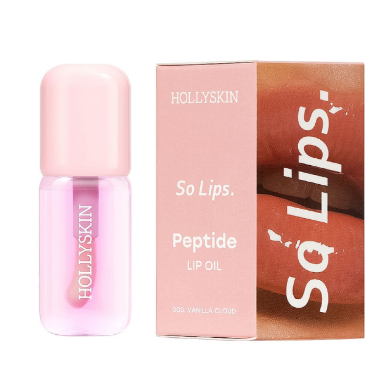 Масло для губ So Lips. Peptide Lip Oil - средство, которое сочетает в себе блеск, уход и комфорт. Масло превращает обычное увлажнение в ежедневный комфорт для губ. Оно имеет легкую и не липкую текстуру, которая мягко обволакивает губы, равномерно наносится на губы и дарит им естественное сияние и ухоженный вид. Формула средства насыщена комплексом натуральных ингредиентов, маслами персиковой и виноградной косточки, макадамии, авокадо, арганы и ши. Масло глубоко питает и увлажняет, восстанавливает нежную кожу губ, а также защищает от шелушения и сухости. Аромат Vanilla Cloud дарит нежную сладость ванили, которая пробуждает ощущение домашнего уюта, вкус выпечки с запахом ванили. Средство окутывает ощущением спокойствия, релакса и гармонии. Средство от Hollyskin дарит губам соблазнительный вид и щедро ухаживает за их витаминным составом.