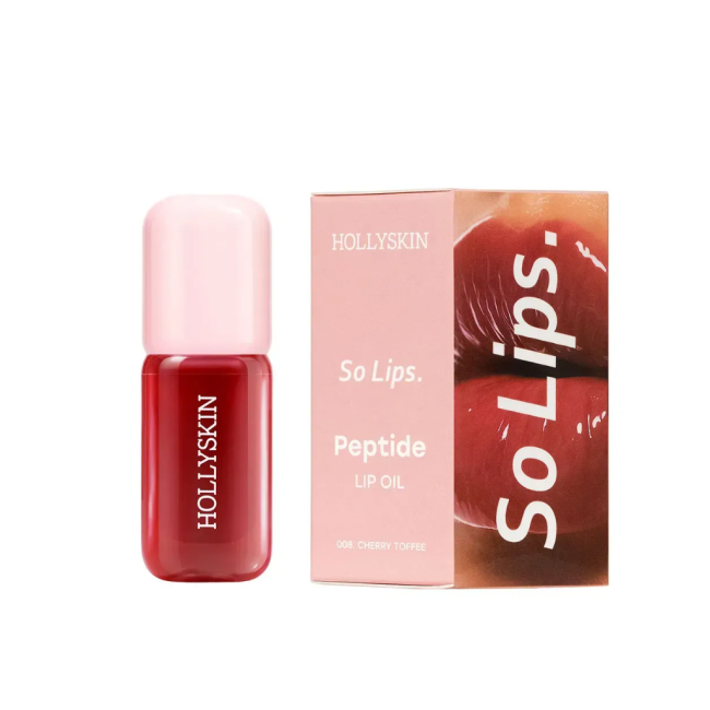 Масло для губ So Lips. Peptide Lip Oil - баланс комфорта и ухода за губами в одном флаконе. Легкая текстура средства равномерно распределяется по губам аппликатором, не липнет и дарит губам соблазнительное глянцевое покрытие. В составе есть комплекс натуральных масел: персикового и виноградной косточки, макадамии, авокадо, арганы и ши, которые интенсивно увлажняют, питают, восстанавливают и защищают кожу от сухости и шелушения. Пептиды - помогают глубокому увлажнению, поддерживают эластичность и способны немного увеличить губы. Сквалан - укрепляет защитный барьер кожи, сохраняет влагу и помогает предотвратить преждевременное старение губ. Аромат Cherry Toffee - сладкое искушение, которое представляет сладкие вишни в карамельной глазури с нежной ванильной ноткой. Средство от Hollyskin делает губы мягкими, ухоженными и сияющими с приятным фруктово-карамельным оттенком.